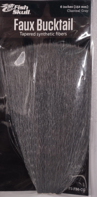 Fish-Skull Faux Bucktail is a tapered synthetic fly tying fiber designed to imitate long natural bucktail. The fibers have the same basic diameter, gentle crinkle, and taper as natural bucktail. It looks almost identical and has the same distinctive action in the water, however the fibers aren't hollow, reducing flare and allowing your fly to sink faster. Every Faux Bucktail is uniform in length, giving you more than twice the usable amount over natural bucktails, thus eliminating the headache of searching for ideal strands. Simply peel off your desired amount, trim to length, and tie in.