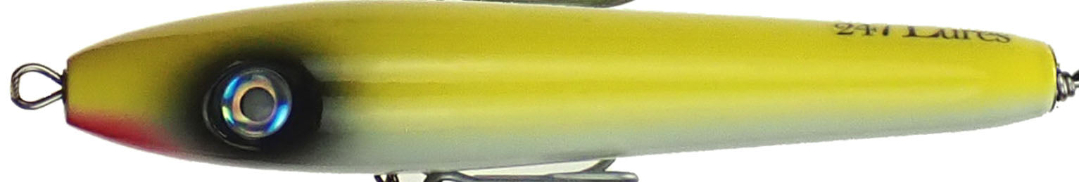 The 247 Lures Mully is 6.5″ long and weighs 2oz, so it’s big enough to throw a country mile but not too big to work like a pro. Small, rapid twitches with the Mully create a walk-the-dog retrieve that will attract fish from far and wide!